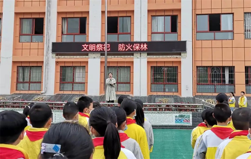 冉冉升起的国旗迎风飘扬,国旗下,六(9)班的蔡子发同学给全体师生进行了《文明祭祀,绿色清明》的演讲。他在演讲中提到:祭祀先人时,烧纸、放鞭炮等行为都是不文明的,不仅对环境造成影响,还会导致森林火灾,清明节寄托的是哀思,我们要用健康文明的方式祭拜。他号召大家通过鲜花、水果祭祀先人,用植树、踏青、登山等有益的活动体会清明习俗,过一个文明健康的清明三天假。