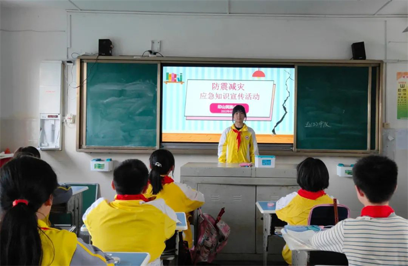 我国是一个地震多发的国家,突发性的地震灾害严重威胁着人民生命财产的安全。为了增强学生的防震减灾意识,提高学生正确面对地震灾害的技能。2022年4月8日,印山民族小学开展防震减灾教育主题班会。