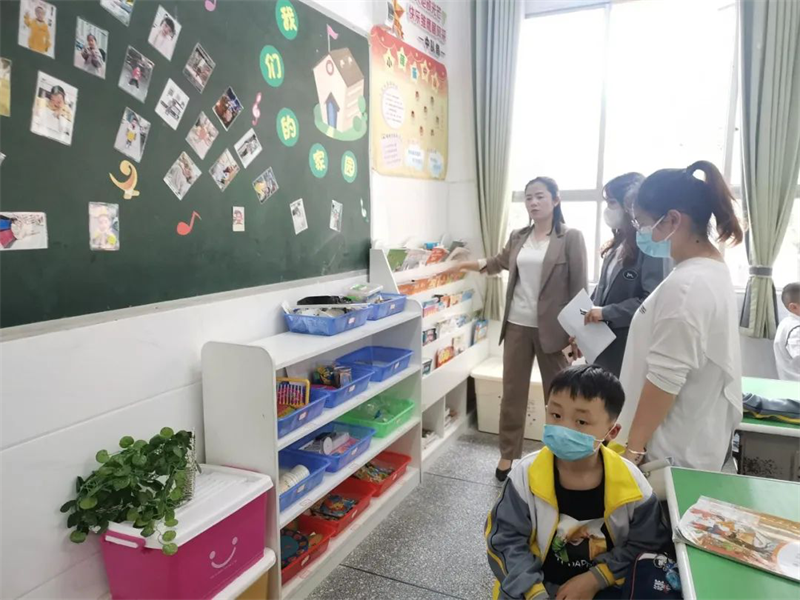 首先,玉屏县实验幼儿园的老师跟随我校一年级的老师进入班级,实地参观一年级教室内幼小衔接的环境打造以及材料的投放。