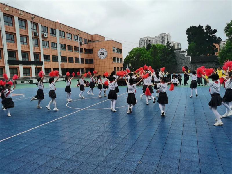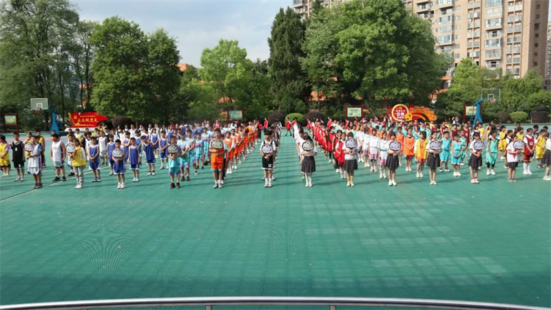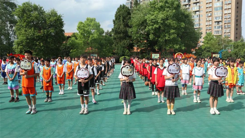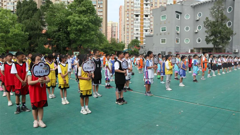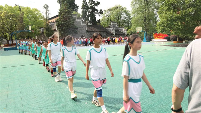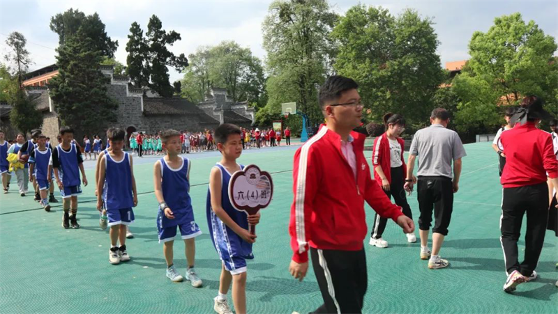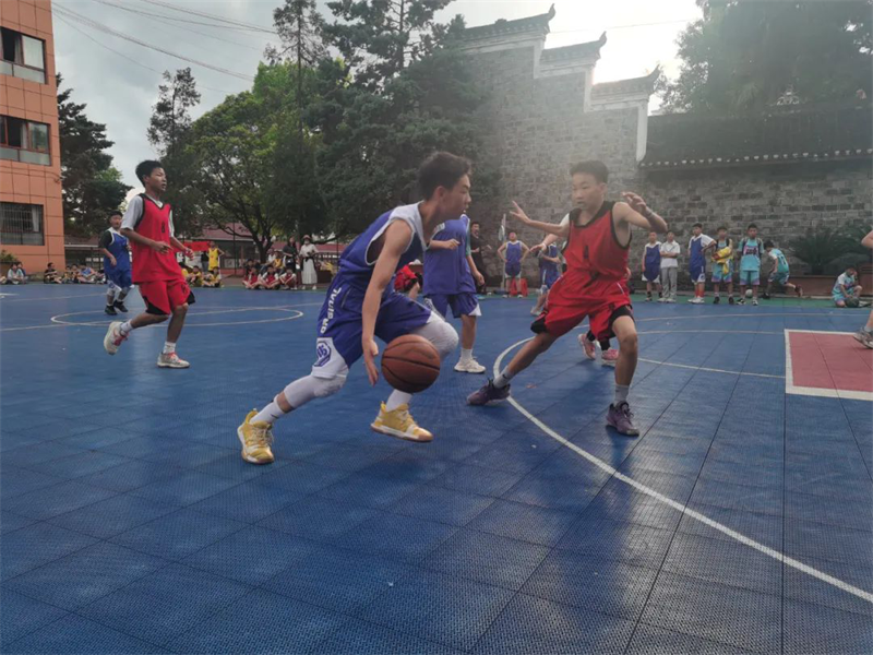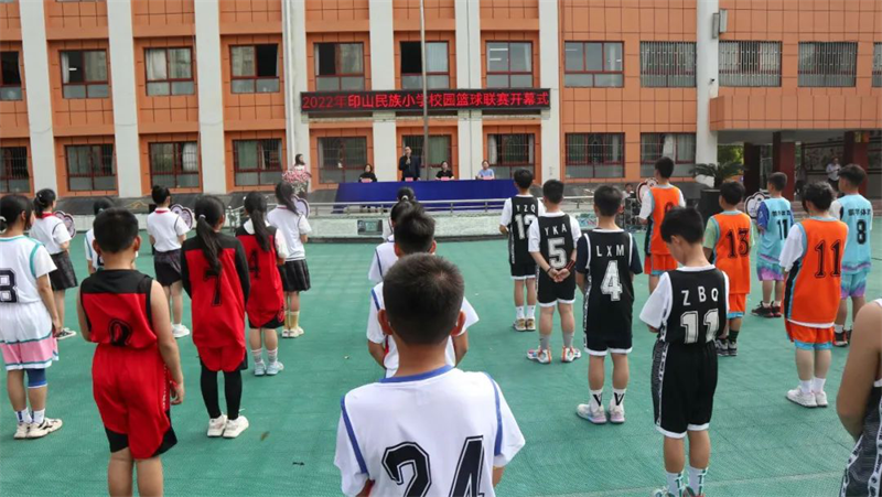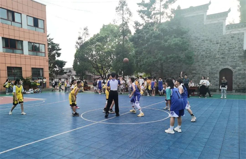 “加油!”“快!投篮投篮”“噢,牛!又进3分球!”,一阵阵欢呼声、呐喊声从篮球场上传来。印山民族小学2022校园篮球赛比赛现场活力四射、精彩纷呈。