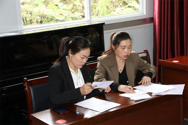 成绩统计组的老师们认真计分