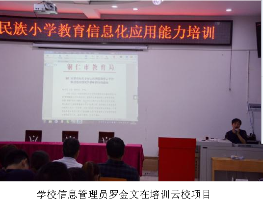 培训由学校校长杨深平主持,学校信息管理员罗金文主讲。本次培训分为两部分。第一部分是国家教育资源公共服务平台的使用,第二部分是印山民族小学云校项目的启动。培训从学校实际出发,引导全体教师认识教育信息化工作的意义,从平台的注册、功能到使用都做了详细的介绍。