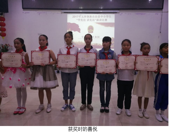 2017年9月16日上午8点半,全县小学“我与文明同行,与礼貌并进”主题演讲比赛活动在印山民族小学阶梯教室举行。来自本县各学校的22位小选手,深情地讲述了身边的人、事、法。展示了孩子们学法、知法、懂法、守法,争做合格小公民的良好现象。他们在舞台上慷慨激昂、精神饱满的演讲赢得了全场师生雷鸣般的掌声。我校选派了李奕言、刘依林和卓文怡三名优秀学生参加本次比赛,李奕言、刘依林同学凭着自己良好的素质以及高超的演讲技巧荣获一等奖、卓文怡获得二等奖的好成绩。