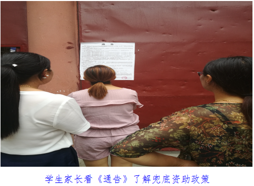 一、加强兜底资助政策宣传:学校在校门外做一期兜底资助宣传栏并张贴通告,利用微印小、学校网站、各班级建立的家校QQ群或微信群等现代媒体宣传兜底资助相关文件,向家长发放《致家长的一封信》,做到宣传率、家长知晓率、申报率100%;