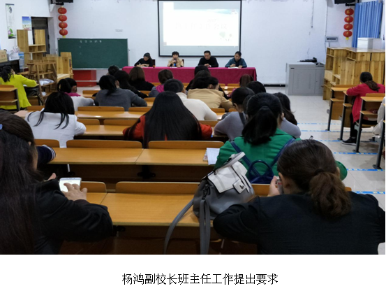 10月26日,我校在阶梯教室召开了班主任工作会议。参会人员有大队部、体育组以及全体班主任参加了本次会议。会议由杨深平校长主持,在会议中,杨深平校长首先结合我校实际情况对班主任工作及班级管理工作提出了指导性建议和要求。第二,杨鸿副校长指出,班主任工作是学校教育教学工作的灵魂,是学校德育工作的重中之重,为了充分发挥班主任的“核心”战斗力作用,有序组织学生开展各项活动,要求由年级组为单位,集合全体教师的智慧制定出有效的班级管理方案。第三,黄九智副校长强调学校的一些安全隐患问题,如用火、用电问题,管制刀具排查问题以及道路安全问题。最后由张丹桂总辅导员针对文明班级五项评比细则进行了详细的解读,并对近期工作做了相应安排,要求班主任充分利用班级中队角、文明监督员为激励机制搞好班级工作。