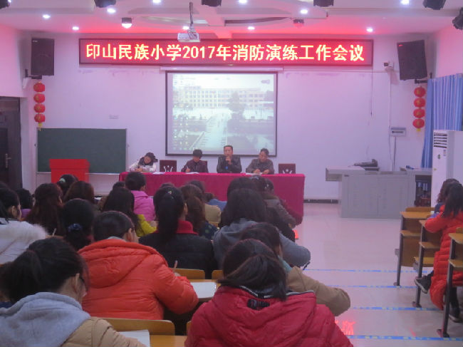 为了科学有效、安全迅速地完成消防演练工作。2017年11月20日下午16:30,印山民族小学全体教职员工,在该校阶梯教室举行消防演练工作部署会议。