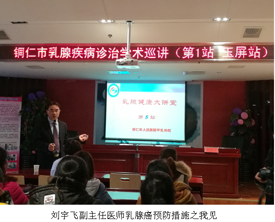 为认真落实好国家“十三五”规划及妇女的“两癌筛查”活动,提高广大女性的保健意识和健康水平,实现人民群众“大健康”的战略目标,做到乳腺癌“早发现、早诊断、早治疗”。县妇联联合铜仁市人民医院甲乳外科、县妇计中心在我们玉屏县城开展“乳腺癌筛查及乳腺健康大讲堂”活动。
