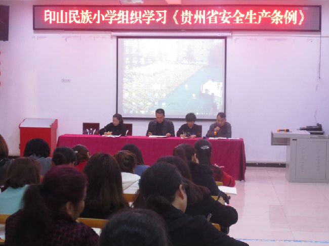 新修订的《贵州省安全生产条例》(以下简称《条例》)的颁布实施,是贵州省安全生产法制建设史上的一件大事,为进一步落实学校的安全生产的主体责任,加强安全生产监督管理奠定了法律基础。为了认真贯彻落实《条例》内容,结合学校实际,3月26日印山民族小学在全体教职员工大会上认真学习《条例》。