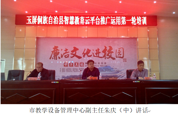 根据铜仁市教育局文件要求,为充分发挥中国西南教育大数据应用中心在教育管理和教育教学方面的作用,提升学校信息化管理水平,助推智慧校园建设。2018年4月4日我县开展市级智慧教育云平台推广应用第一轮培训。市教学设备管理中心副主任朱庆、玉屏县教育局副局长高芝潮、深圳市海云天科技股份有限公司培训负责人秦正坤以及全县中小学、幼儿园教务工作和信息化工作负责人参加了此次会议。