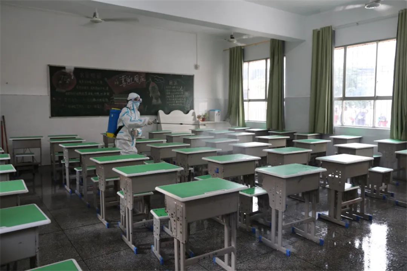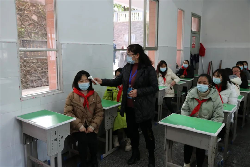 三、学生进教室前,进行二次体温检测,室内开窗通风半小时以上。学生有序(各班级分别设置指示通道)到达教室门口,向班主任提交在家填好的每日体温检测表,并进行二次体温测量和登记。