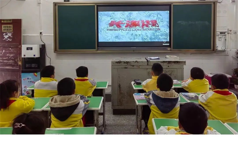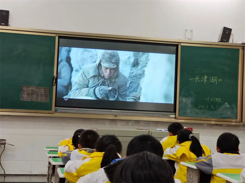 第二天全体师生观看了爱国教育影片《长津湖》,增强了全体师生的爱国意识,并进行了行为习惯和疫情防控的教育。